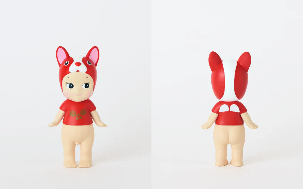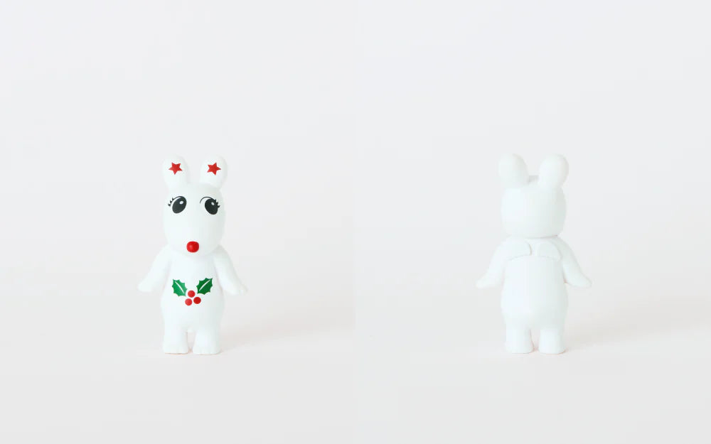 Sonny Angel and Robby Angel feature two possible colorways in aclassic Christmas red and white. Sonny Angel wears abear costume with a party hat, while Robby Angel is adorned with hollyand star motifs. Both are eagerly waiting to deliver a Christmas gift to you.